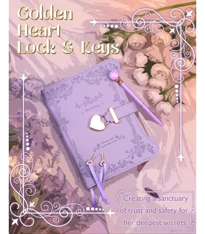 - Cerradura y llave de corazón dorado: cada diario viene con un cierre de corazón dorado y dos delicadas llaves. Estas elegantes cerraduras aseguran que sus secretos estén protegidos, ofreciendo un santuario privado donde sus sueños se guardan de forma segura.