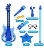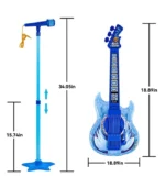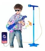 - Divertidos juguetes musicales: la música juega un papel importante en el crecimiento de los niños. Los niños pueden disfrutar de varias canciones o presionar las teclas de nota para crear sus propias canciones. Los juguetes de guitarra también se pueden conectar a teléfonos móviles y MP3 para reproducir canciones. Este juego de guitarra y micrófono les dará a los niños la oportunidad de estimular y desarrollar sus habilidades musicales. Ayuda a cultivar el placer musical y el sentido de la música de los niños.