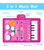 Juguetes musicales 2 en 1 para niños pequeños de 1 a 3 años, teclado de piano y alfombrilla de batería, tapete de juego sensorial musical, juguetes para bebés de 1 año de edad, juguete de desarrollo