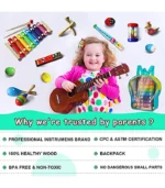 • Juguetes musicales seguros y saludables para niños pequeños: aprobado por CPC. Estos instrumentos están hechos de materiales ecológicos de alta calidad, son seguros y confiables para los niños pequeños. Con buena mano de obra, los instrumentos musicales son suaves en superficie, diseño de borde redondo, agradable en pulido y adecuado en tamaño. No hay necesidad de preocuparse por lesiones cuando el bebé juegue con los juguetes. Para niños más pequeños menores de 3 años, por favor esté acompañado por adultos cuando juegue.