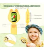 Mafiti Microscopio para niños, mini bolsillo de mano, microscopio educativo, kit de ciencia educativa, juguetes, regalos de Navidad/cumpleaños para niñas de 3 a 12 años, amarillo