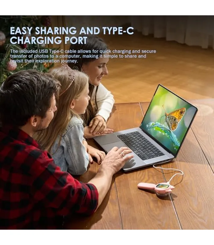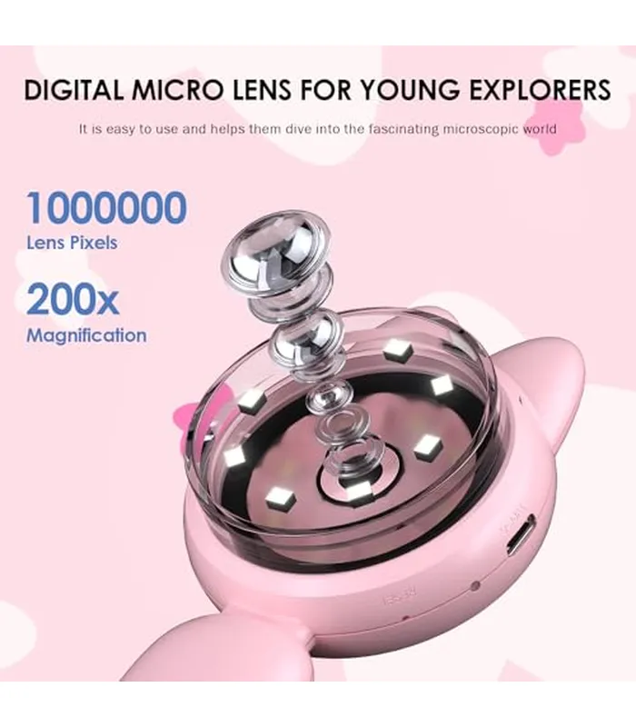 • Descubrimiento HD para jóvenes científicos: pantalla IPS de 2 pulgadas y cámara de 1 MP magnifican los objetos cotidianos con detalles de cristal. Ve texturas de monedas como cráteres lunares y células de flores como vidrieras. Lente resistente a los golpes con fácil captura de un solo toque, diseñada para crecer con la curiosidad de los niños mientras protege los ojos delicados.