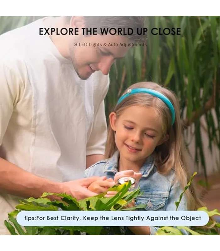 • Claridad de grado profesional simple: zoom de 200X y sistema de enfoque dual que se adapta de rocas de patio trasero a copos de nieve. 8 LED regulables crean iluminación de calidad de museo con corrección de color automática. Las imágenes de grado de laboratorio cumplen con los controles aptos para niños, convirtiendo los paseos por la naturaleza en laboratorios de ciencias sin configuraciones complicadas.