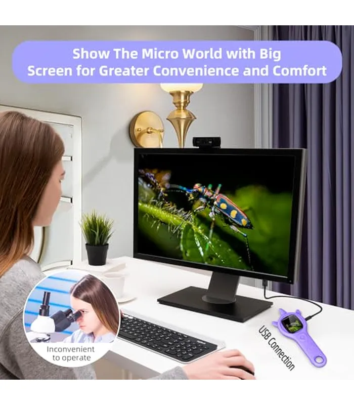 - 【Fácil de usar】: este microscopio de mano tiene un mecanismo de enfoque simple, lo que permite a los niños ajustarlos y operarlos de forma independiente. Y la pantalla LCD de 2 pulgadas está diseñada con un ángulo recto que es amigable con el cuello y elimina la fatiga ocular. Tener un cable USB o una tarjeta SD conectada a la PC para ver en vivo