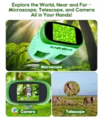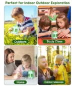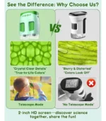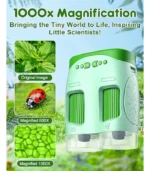 • Lleva la ciencia a cualquier lugar: portátil y fácil de usar. Ligero y portátil, este microscopio de mano es perfecto para el hogar, la escuela o aventuras al aire libre. Con una batería recargable, los niños pueden explorar el mundo en cualquier momento y en cualquier lugar, ¡haciendo que la ciencia sea divertida y accesible!