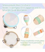 - Exquisita artesanía: la superficie del tambor de la pandereta está hecha de piel de oveja sintética, ofreciendo un aspecto semitransparente y una textura realista, asegurando durabilidad y resistencia. El clarinete, el sonido de madera, la campana de mano y dos maracas están adornados con intrincados diseños pintados a mano. Este meticuloso proceso de pintura a mano no solo requiere un tiempo y esfuerzo considerables, sino que también da como resultado piezas impresionantes e individualizadas, cada una muestra de belleza y encanto únicos.