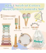 Raimy Juego de instrumentos musicales – Colores neutros Montessori Juguetes Montessori de Percusión Música Moderno Boho Xilófono Regalos de cumpleaños para niños de 1, 2 y 3 años, niños pequeños y