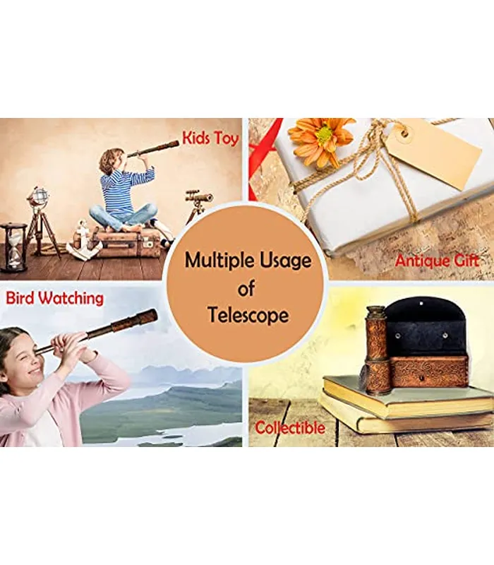 • Réplica vintage: Esta es una reproducción de calidad totalmente funcional del telescopio de latón antiguo utilizado en tiempos antiguos. Es una gran imitación del spyglass vintage. Se enfoca y magnifica debido a la excelente óptica para una visualización real.